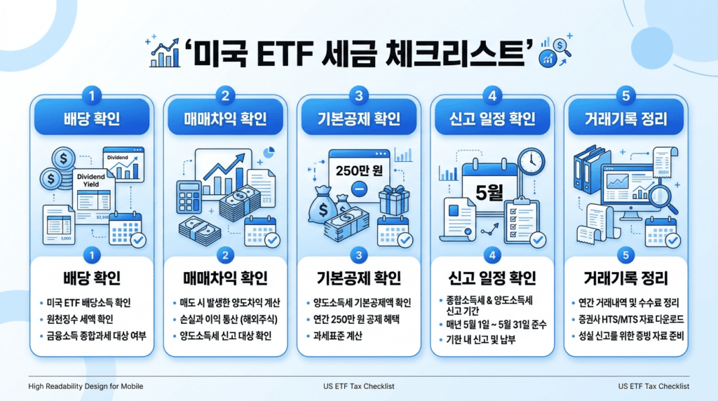미국 ETF 세금 7가지: 배당소득세·양도소득세·신고까지 한 번에 정리