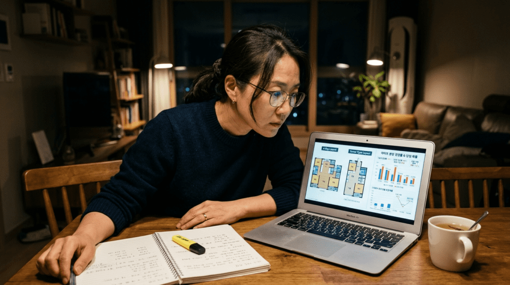 하지만 우리의 목표는 살기 좋은 구조를 찾는 것이 아니라, 일단 ‘당첨’이 되어 새 아파트 분양권을 손에 쥐는 것입니다. 따라서 경쟁률이 수백 대 일로 치솟는 인기 타입(A타입)을 과감히 버리고, 사람들이 기피하는 못난이 구조, 즉 ‘타워형(탑상형)’이나 세대수가 적은 B, C, D 타입에 청약 통장을 던져야 합니다.