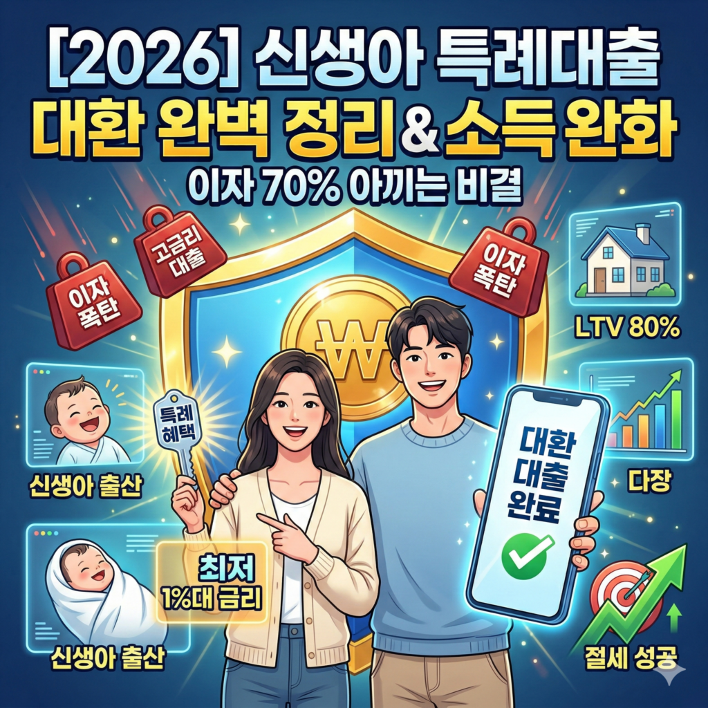 맞벌이 부부들이 내 집 마련을 포기하게 만들었던 가장 큰 장벽, 바로 ‘소득 제한’이었습니다. 열심히 일해서 연봉을 높였더니 오히려 정부 대출 혜택에서 제외되는 역차별을 겪어야 했죠. 하지만 2026년, 대한민국 부동산 시장의 게임 체인저로 불리는 **’신생아 특례대출’**이 파격적인 조건 완화와 함께 돌아왔습니다.